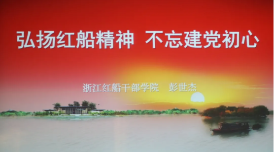彭老师强调,2021年是中国共产党百年华诞,百年征程波澜壮阔,百年初心历久弥坚。从上海石库门到嘉兴南湖,一艘小小的红船承载着人民的重托,民族的希望,越过急流险滩和惊涛骇浪成为领航中国行稳致远的巨轮。他向在场的师生们讲述了红船精神提出的来龙去脉,红船精神内涵的历史解读以及红船精神传承的实践要求。
