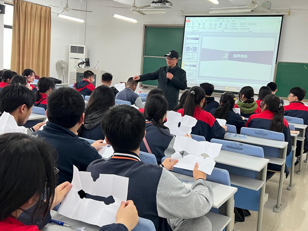 周航运用“工善、商强、管达、理明”四个词语来形容我院,并为同学们讲述了我院的各类专业与培养特色等多方面的内容。此外,周航老师通过讲小故事和撕纸小游戏与同学们互动,让同学们更好地理解管理类专业的重要性,为将来填报志愿提供帮助。