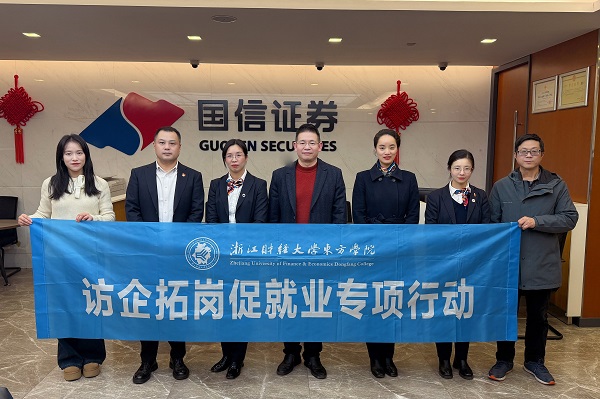 1月15日,学院党总支书记余健带队走访校友并访企拓岗,受到国信证券浙江分公司副总经理孙汝,国信证券杭州体育场路营业部总经理汤佳波,国信浙江分公司人力资源部总经理裴绍鹏、国信证券杭州体育场路营业部综合理财三部总经理、学院2010届工商管理专业校友鲍祺烨的热烈欢迎。