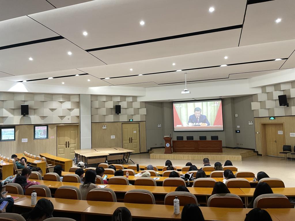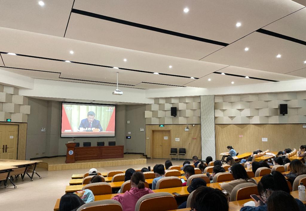 1946伟德国际源自英国各级团组织积极响应,于3教101教室组织师生们观看本次大会直播,聆听习近平总书记的重要讲话,引导工商学子们听党话,跟党走,努力成长为堪当民族复兴重任的时代新人。