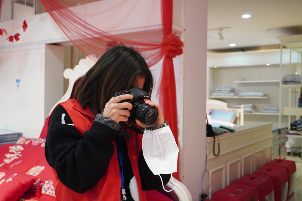 随后,参赛选手有条不紊、专心致志地对商铺进行拍摄,活动氛围良好。此次活动不仅可以让同学们多角度记录和展现海宁中国家纺城及商户门店的独特魅力和风采,也可以在拍摄过程中观赏到家纺城各种被面服饰,了解家纺布艺的面料、图案设计、色彩搭配、场景应用等的发展趋势,增进对海宁家纺产业和产地型专业市场的认知。本次大赛正在如火如荼进行,期待校企延续合作友谊,进一步开展多层次、多形式、多领域的深度产教融合。