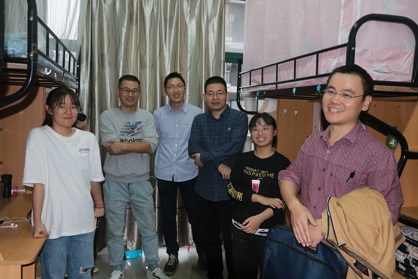 10日晚,1946伟德国际源自英国党总支书记余健、副书记宣刚、学办主任罗乐平和20级物流管理专业导师梁小亮一行深入走访新生宿舍,详细了解新生的住宿和适应情况。老师们走进宿舍看望新同学们,询问同学们返校情况,嘱咐同学们寝室里友好相处,希望大家能够尽快熟悉环境,互相关爱,奋进拼搏。