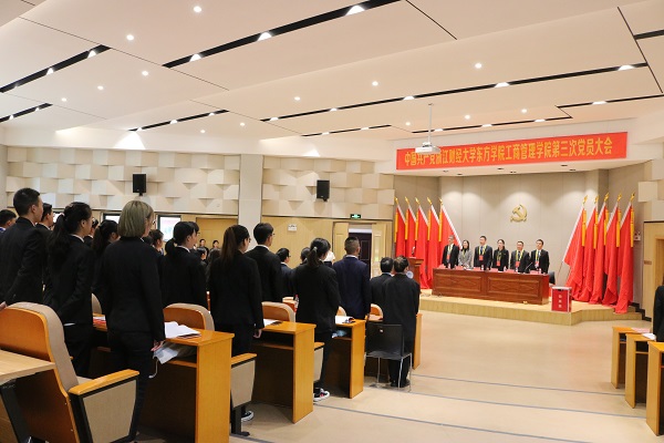 雄壮的国歌声后,大会正式拉开帷幕。首先由陈晓阳同志致开幕词,他表示在我院加强应用型建设发展的重要阶段召开第三次党员大会,必将对全面推进我院新一轮改革与发展产生积极而深远的影响。他回顾了本届党总支开展的工作和取得的成绩,希望全体师生要以第三次党员大会为契机,进一步统一思想、振奋精神,团结一心为1946伟德国际源自英国的发展贡献自己的力量与智慧。最后他预祝本次大会取得圆满成功。