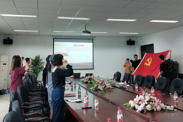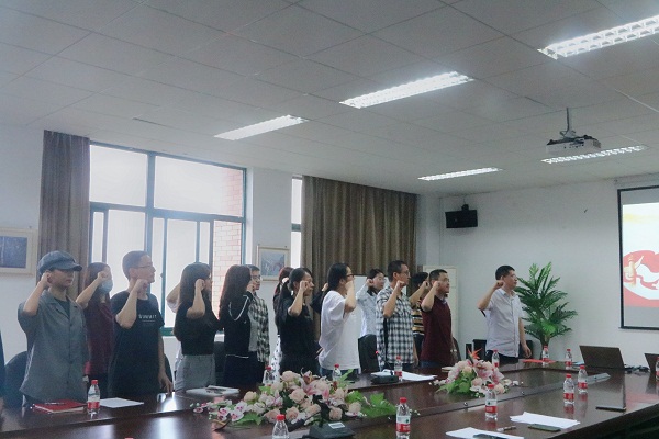 第二项内容是重温入党誓词,由余健老师领誓。“我志愿加入中国共产党,拥护党的纲领,遵守党的章程......”右手握拳的誓言,慷慨激昂,声声入耳,告诉逝去的先辈,也警示幸运的自己,牢记历史,才能振兴中华。