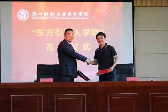 随着一阵音乐的响起,刘中文老师和罗晓峰签署了“东方引路人学院”合作协议,紧接着林香娥老师和罗晓峰共同为“东方引路人学院”揭牌。