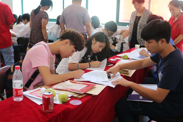 截止至13日下午3点,随着最后一位“小鲜肉”的成功报道,工商管理分院工商管理、市场营销、人力资源管理、工程管理、物流管理五个专业共计418名新生已全部报道注册完毕,迎新工作报到程序顺利结束。