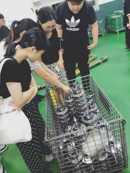 调研小组到达后,厂务负责人朱主任引领我们对公司的生产车间进行了参观。参观过程中,详细地介绍了汽车零部件的生产流程以及车间管理的模式。其中流水线上的自动化设备引起了同学们的好奇,同学们针对车间的数字化流程向工作人员积极提问,工作人员也耐心地为同学们进行了解答,使大家对奥通公司目前从事的具体技术业务有了一个初步的认识。