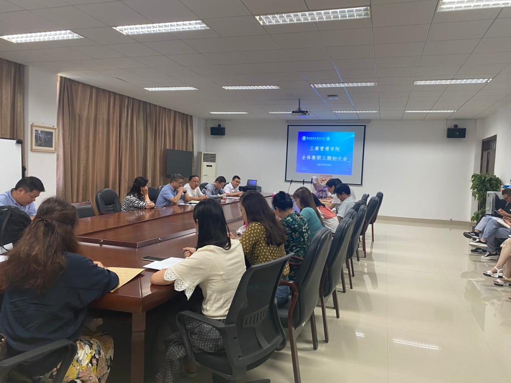 会上,陈晓阳就新学期教学、科研、学工各条线向全体教职工汇报工作思路、传达工作部署:一、以党建引领、立德树人为核心任务,将课程思政、教学科研、学生工作和社会服务等并重有机结合串联,形成协同融合工作机制;二、本学期教学工作重点为省级一流课程申报、课程思政建设和传统专业的数字化改造;三、启动以产业联盟、企业数字化改造为研究重点的科研团队建设,探索教学和育人紧密结合的常态化学科建设;四、启动教师晋升培养帮扶机制,形成团队合力。