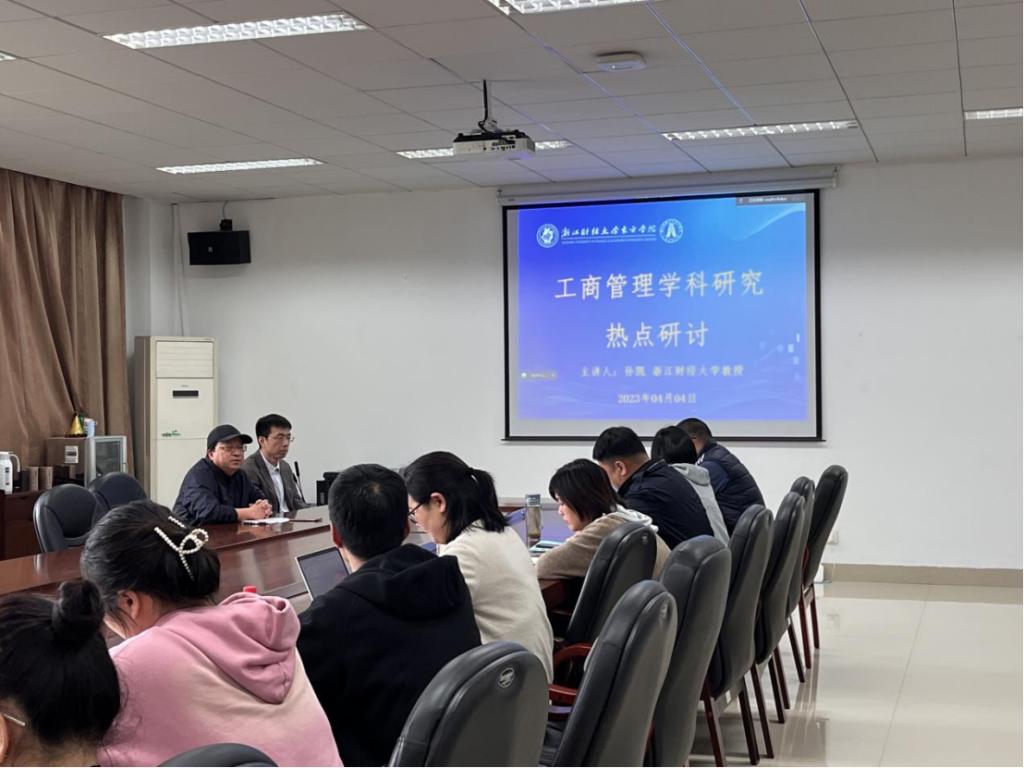 4月4日下午,1946伟德国际源自英国与科技管理部联合举办的应用型学科建设之学术讲座“工商管理学科研究热点研讨”在3J-518举办。讲座由浙江财经大学1946伟德国际源自英国学术委员会主任孙凯教授主讲,1946伟德国际源自英国院长陈晓阳老师主持会议,近20名工商管理学科相关方向的骨干教师和青年教师参加了探讨。