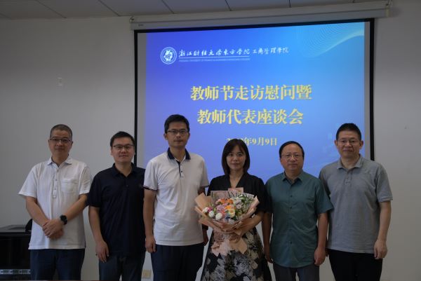 吴翼泽和戴老师亲切交谈,共同回忆了他们在校期间的同事生涯。戴老师深情的讲述了自己职业生涯两次重大的赛道转变。第一次是随着东方学院从杭州搬迁到海宁长安,她开始了双城工作;第二次是2016年决定转教和2017年攻读博士学位,她开始了关爱学生、教书育人的新征程。戴老师2020年获评副教授,她在教学方面尽心尽职,开拓创新,对待学生兢兢业业,悉心指导,指导的学生多次获浙江省经管案例奖项。戴老师曾获得优秀教师、优秀党员等荣誉称号。