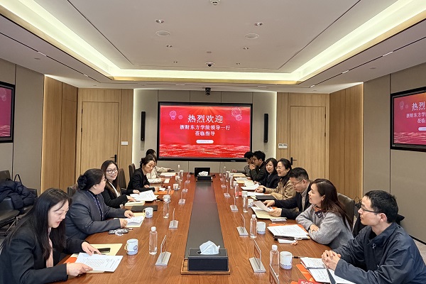 会议伊始,万事利集团党委委员、工会主席、万事利丝绸董事长助理沈小华女士对方咏书记一行来访表示了热烈欢迎。万事利集团党群办主任陈惠英详细介绍了企业在推进党的建设与事业发展深度融合方面的经验和特色。万事利丝绸管理中心副总监、人力资源部经理唐婵娟回顾了双方过去五年的合作历程,双方在学生参观、品牌市场调研、营销实训、数据标注等方面开展了扎实有效的合作,取得了良好成效,并表达了未来进一步深化校企协同、拓展合作领域的强烈意愿。