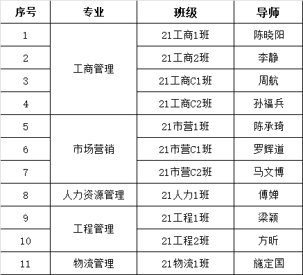 2021级新生专业导师安排工作已经结束,经审核,现将导师名单进行公布,请各专业导师到学院教学办公室领取导师工作记录本,并做好新生专业导师见面会的准备工作。