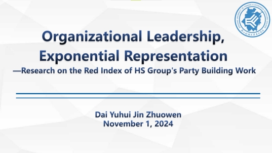 汇报论文题目:组织领导力,指数代表----HS集团党建工作组织指标研究。本论文是2023年国家级大学生创新项目:民营企业党建赋能高质量发展研究的研究成果之一。学生负责人21级工商管理专业的金卓文同学代表课题组从研究背景、研究方法、企业现状、发展阶段和研究意义等五个方面进行十分钟的线上论文汇报。