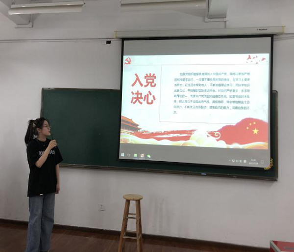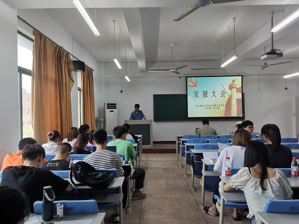 本次学生第一党支部共有26名拟发展对象,发展大会第一项议程是拟发展对象依次进行入党誓词的背诵和自我介绍,并从思想、工作、学习、生活等方面向大家阐述自己的收获与不足之处,最后陈述自己对党的认识,表明自己的入党决心。
