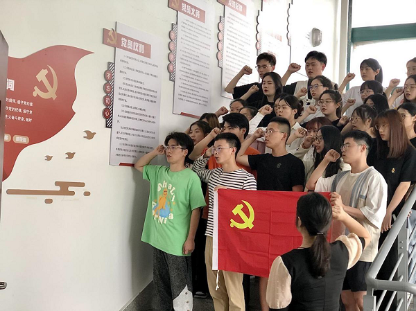 会后,党支部书记周莉莉带领所有预备党员进行入党宣誓,他们坚定高昂而又激动的声音久久回荡在教学楼里,充分展现出了对党的信仰和崇高敬意。