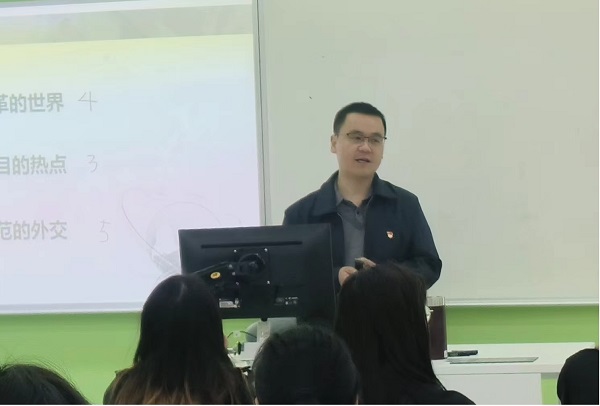 宣刚以人类命运共同体为切入点,从“我国外交思想的发展脉络、新时代中国外交取得的新成就、习近平的外交思想、应对大变局中国外交开创新局面”四个层面介绍了新时代中国特色大国外交伟大成就的非凡十年,围绕中国外交伟大成就进行阐述,突显了外交的历史意义。宣刚全面系统阐述了中国外交政策的重要立场,并指出入党积极分子们应当开眼看世界,对复杂的国际形势有一定的把握和思考能力。他还强调,中国特色大国外交全面推进,构建人类命运共同体成为引领时代潮流和人类前进方向的鲜明旗帜,我国外交在世界大变局中开创新局、在世界乱局中化危为机,我国国际影响力、感召力、塑造力显著提升。