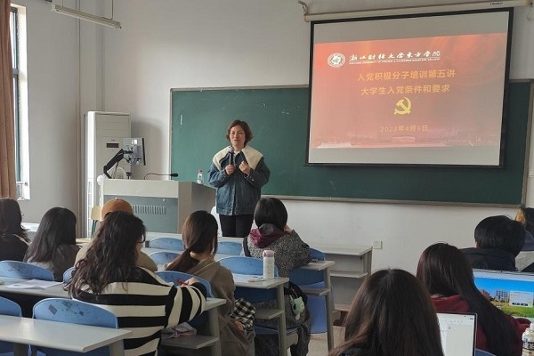 叶颖蕊老师介绍党员入党的程序和流程,从四方面阐述大学生入党的条件和要求。她指出:大学生要树立正确的入党动机,加强理论学习,提高政治觉悟;保持学习业绩的先进性;坚持全心全意为人民服务的核心宗旨;以诚待人,以信立身。她强调,入党程序是严苛和公平的,发展党员的流程是透明的,青年学生应自省,提高自身素质达到合格党员的要求。叶老师要求入党积极分子正确理解和认真遵循申请入党的条件、党员的基本条件,以党员标准严格要求自己,在点点滴滴、日积月累学习工作中,不断提升自我,用实际行动彰显党员的先进性和纯洁性,为党旗增辉添彩,为党和人民的事业添砖加瓦。