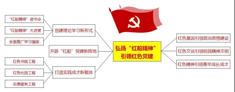 学院党总支立足弘扬“红船精神”,创新党建工作载体,开展红色书院工程、红色社团工程、红色服务工程。各党支部扎实落实一个支部结对一个村(或企业)、一名党员联系一个班级、一名党员联系一个寝室、一名党员联系一个三困生、一名党员进入一个学术社团的的“五个一”工程,建立党员志愿服务长效机制,在实践中弘扬“红船”奉献精神,在服务中展现党员的风采、榜样的力量。