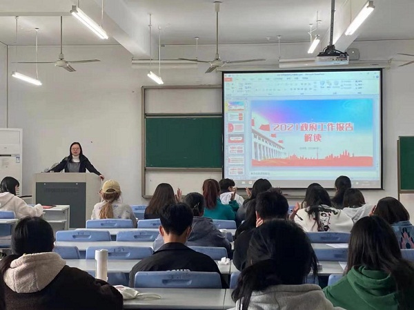 来明佳老师在课堂上为同学们介绍了2021年全国两会的基本情况,带同学们回顾了2020年我们中国共产党交出的一份份优秀的成绩单。同时,来明佳老师还带同学们回顾了“十三五”时期的发展成就和“十四五”时期的主要目标任务,从一串串数据中,同学们再次见证到了坚持中国共产党的领导的正确性。