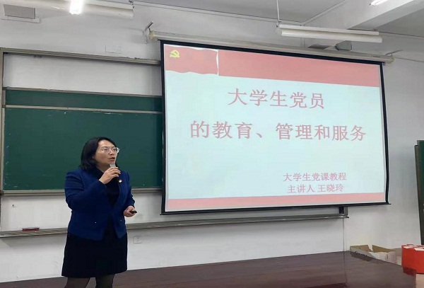 王晓玲老师首先告诉同学们,“新冠疫情对于我们国家来说是一次危机也是一次大考”,对比中国的两个辛丑年,告诫同学们“落后就要挨打”,从而引出“青年强则国强”、“青年大学生要为中华崛起而读书”的观点。王晓玲老师指出,青年大学生要不被社会风气所影响,端正入党动机,对于不合自己心意的事要坦然、少抱怨,要热爱,不服就干!她希望同学们能坚定信念、发奋学习、积极工作、履行职责、当好先锋,担当起青年一代民族复兴的使命。