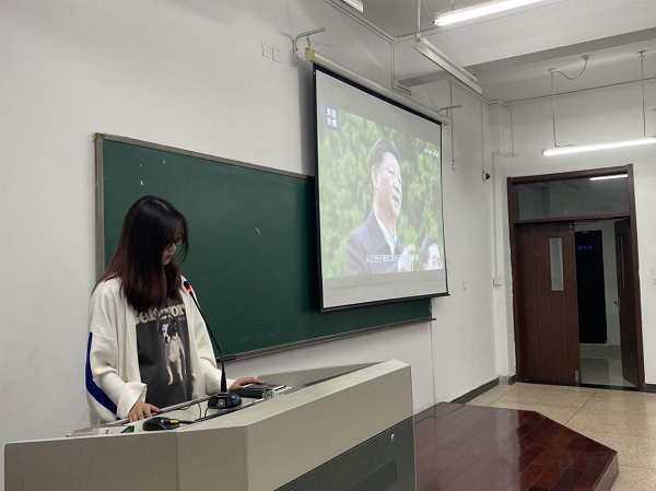 首先,金露同学和同学们观看了“鉴史知来,跟着总书记学党史”的主题视频,向同学们介绍了党史发展的三个阶段以及党史学习的重要意义。习近平总书记强调,“历史是最好的教科书,中国革命历史是最好的营养剂”。在学习党的历史过程中,只有了解历史,才能开阔我们的视野,才有坚持正确路线、方针与政策,才能有助于提高自身的组织领导与工作能力。