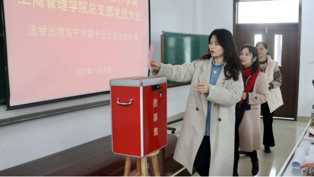 根据学校选举中共海宁市第十五次代表大会代表工作的总体安排,11月30日下午,1946伟德国际源自英国党总支在3教409召开党员大会,选举海宁市党代表,会议由党总支副书记宣刚主持。