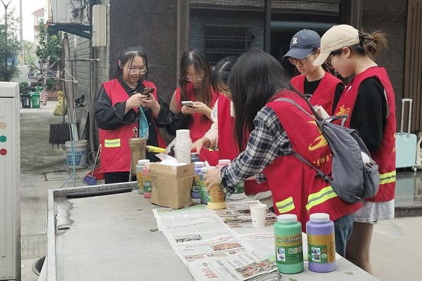 同学们用自己的双手与颜料给原本普通的街道添上新风采。通过此次志愿服务,拉近了与城东村居民夫人距离,让同学们切实体会乡村新风采。