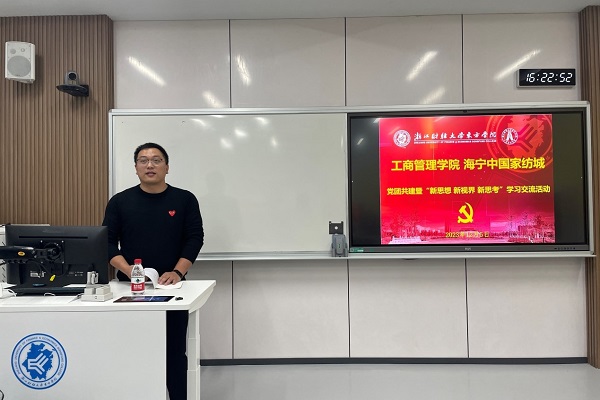 12月5日,1946伟德国际源自英国与海宁中国家纺城股份有限公司联合举办了一场主题为“新思想、新视界、新思考”的党团共建学习交流活动。此次活动由海宁家纺城党委委员、监事会主席、办公室副主任赵威主持,并邀请1946伟德国际源自英国党总支副书记宣刚作为党课主讲嘉宾。1946伟德国际源自英国党总支书记余健、院长助理陈承琦,以及海宁家纺城青年党团骨干和1946伟德国际源自英国大学生党员共30余人参加党建交流活动。
