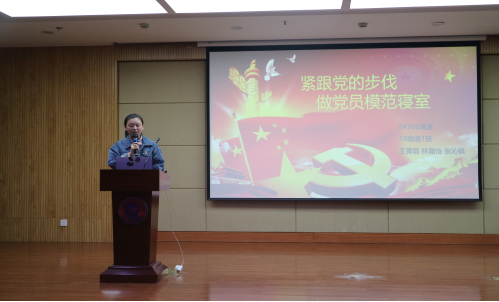 本次比赛首先由14个“党员模范寝室”候选代表依次现场展示本寝室的成员现状、学风建设、寝室环境和寝室特色。她们说:“图书馆是她们的第二个家,要努力吸取外界的优质养分,向着红色的光,野蛮生长。”在寝室一方寸土上,他们互相取暖,互相鼓励;在学习的路上,他们砥砺前行,团结奋进;在工作的岗位上,他们同舟共济,积极奉献;在红色的梦想里,严于律己,踏实肯干。他们在前进的路上负重前行,收获颇丰,一份份荣誉证书,一次次奖学金,一回回社会实践和参与比赛,诠释着一颗颗永向党的初心。