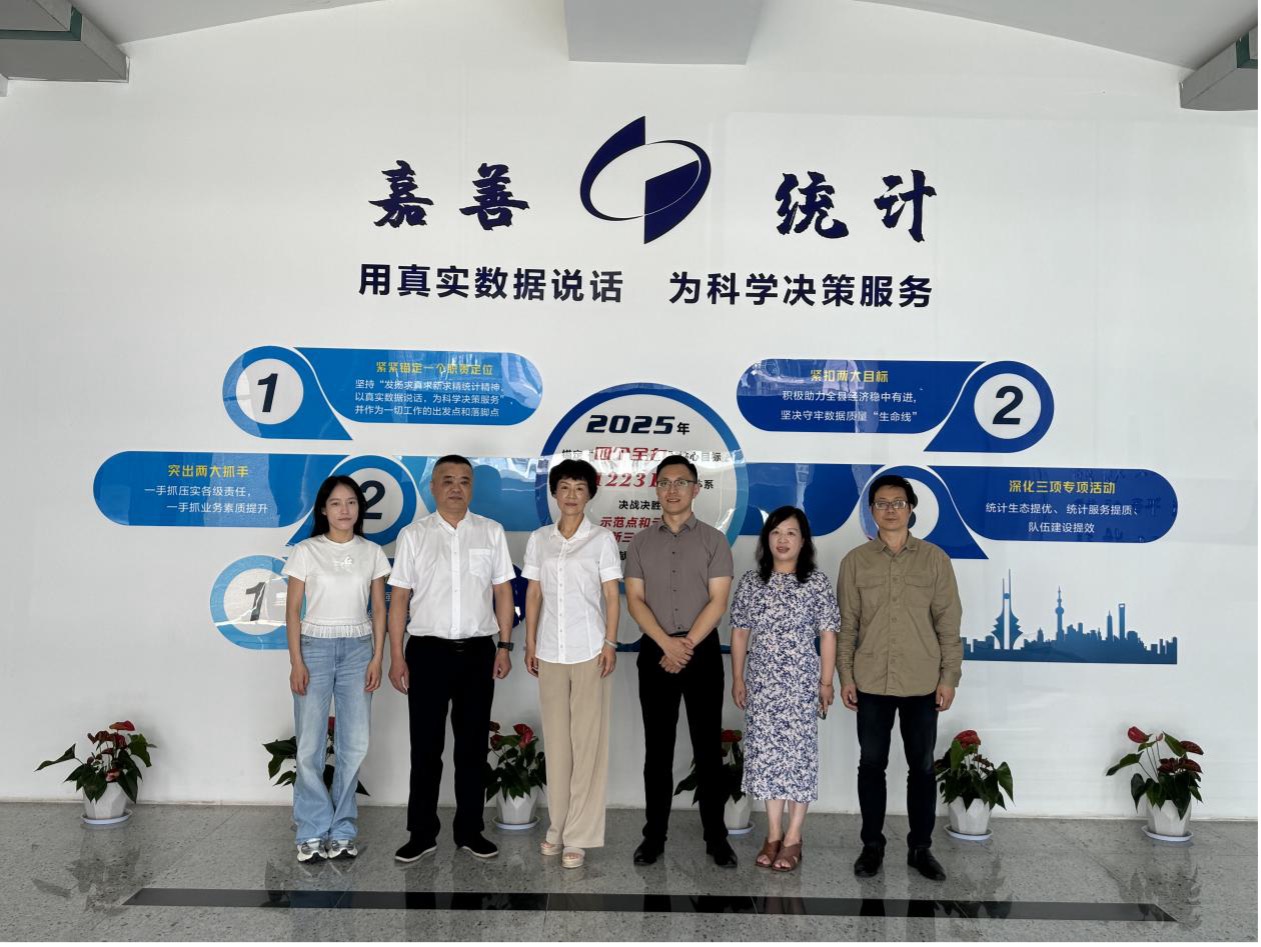 六月,骄阳似火,一场关于感恩、传承与展望的暖心相遇正在上演。6月27日上午,东方学院校友会执行会长伏晓红、学院党总支副书记杨荧彬、学院团委书记童雅倩一行专程奔赴嘉善县统计局,走访2014届工程管理专业优秀校友叶俊杰副局长。此行不仅承载着母校对校友的深切关怀,更饱含着共话人才培养、共谋发展新篇的殷切期望。嘉善县统计局党组书记、局长芮晓荣全程陪同。