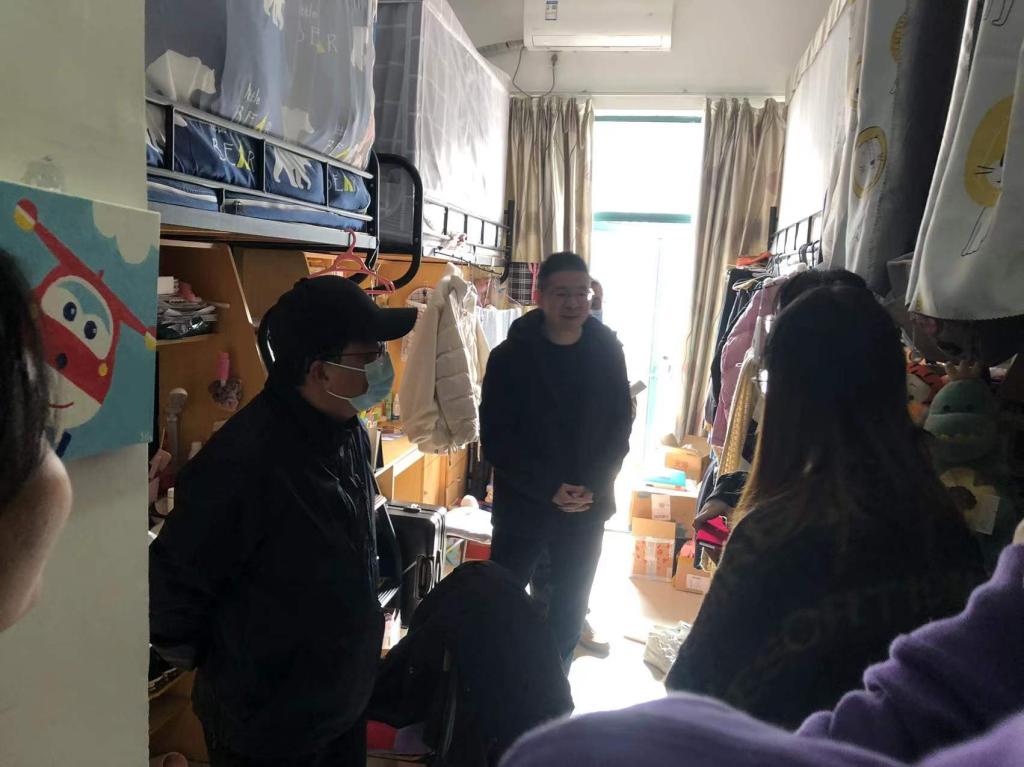 12月21日中午,1946伟德国际源自英国院长陈晓阳、党总支书记余健、副书记宣刚、副院长周航与全体辅导员走访部分在校生资助对象寝室,发放暖心物资。