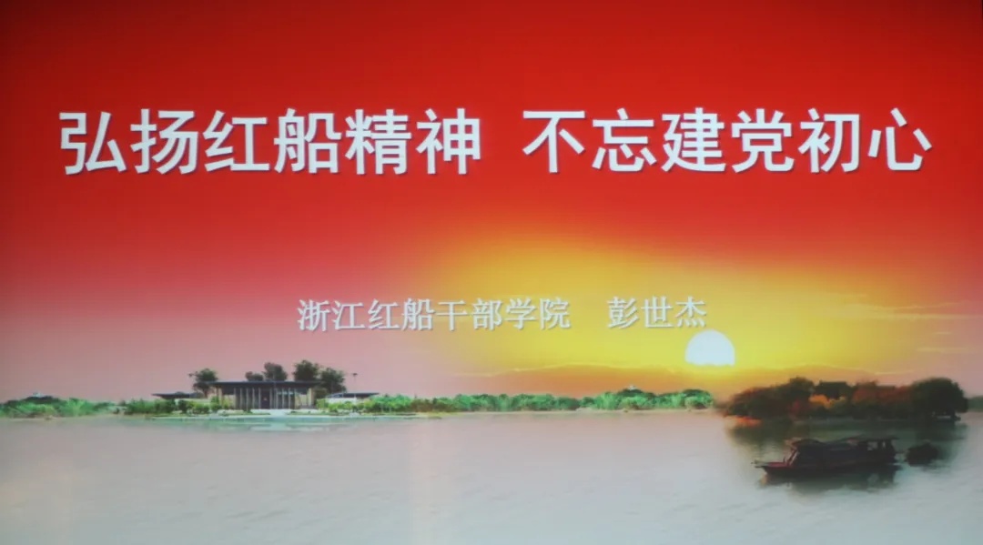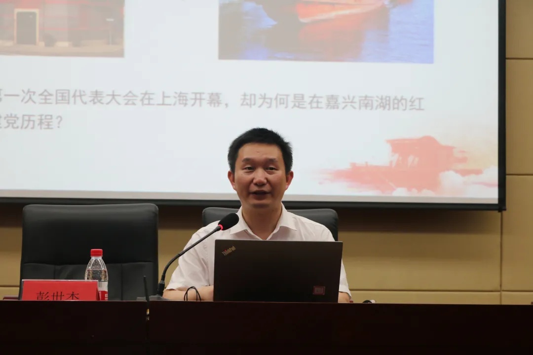 彭老师强调,2021年是中国共产党百年华诞,百年征程波澜壮阔,百年初心历久弥坚。从上海石库门到嘉兴南湖,一艘小小的红船承载着人民的重托,民族的希望,越过急流险滩和惊涛骇浪成为领航中国行稳致远的巨轮。他向在场的师生们讲述了红船精神提出的来龙去脉,红船精神内涵的历史解读以及红船精神传承的实践要求。
