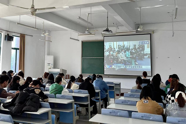 2021年11月12日,1946伟德国际源自英国党总支组织教工党支部及学生党总支部在第三教学楼观看中国共产党第十九届中央委员会第六次全体会议新闻发布会直播活动。本次活动由各支部负责人主持,教工党支部全体党员教师,学生党支部全体党员、预备党员和入党积极分子参会。