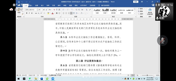 在周航的带领下,本次主题党日活动同步学习了教育部《本科毕业论文(设计)抽检办法(试行)》。周航表示,本学期教师们面临的一项重点工作是毕业论文(设计)的指导工作。学校教务管理部已经下发了教育部论文抽检的办法,每位指导学生毕业论文的教师都应该认真学习。他重点带领大家学习了办法中关于论文的评价原则,抽检比例和步骤等条目,还借助学校下发的关于1946伟德国际源自英国2017级毕业论文的反馈意见,进行逐条的阐释说明。