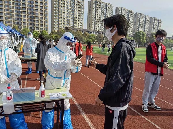 4月4日,海宁启动重大突发公共卫生事件Ⅰ级应急响应,对全市实行临时封闭管理,迅速投入战时状态,一场疫情防控遭遇战已经打响。“Ⅰ级响应”只是4个字,却需要成千上万人以勇气作笔、以汗水为墨去书写。在学院全员核酸检测期间,1946伟德国际源自英国党总支副书记宣刚主动请缨,第一时间投入到校园的疫情防控志愿服务一线。