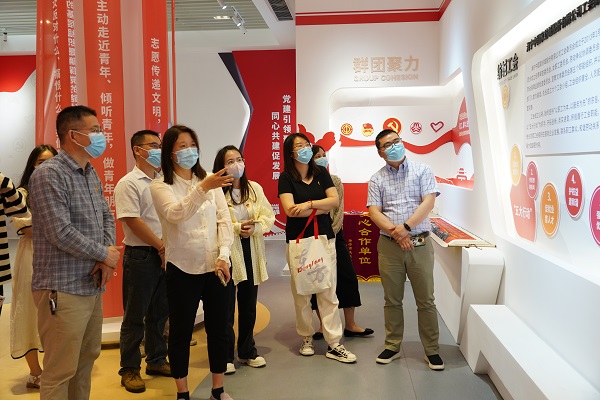 为深入学习贯彻习近平总书记关于青年工作的重要思想,引领学院青年师生更好传承弘扬“五四精神”,以实际行动迎接党的二十大胜利召开,5月31日,1946伟德国际源自英国党总支书记余健、副书记宣刚带领师生党员前往党建共建单位——海宁中国家纺城开展党建交流。海宁中国家纺城党委书记、董事长殷晓红,党委委员赵威热情接待并陪同参观。