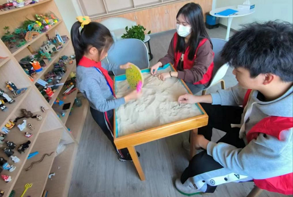 21视传2程馨美:今天作为一名志愿者到长安镇中心小学参与了心理辅导站的志愿者活动。本次我们对接的是二年级的小朋友。我们边做沙盘游戏边聊天。在和小朋友的沟通交流中,我们从生活、学习、家庭等方面了解到她的性格、兴趣以及近期的烦恼。她的言语稚嫩且有点缺乏安全感,于是我们引导她多表达自己的情感和内心想法。