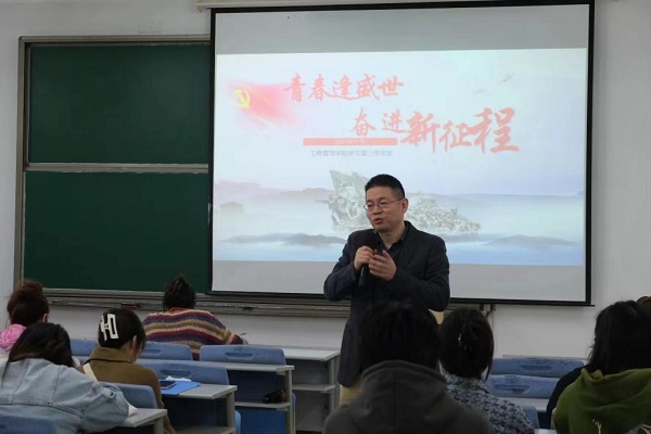 会议伊始,学院党总支书记余健发言。余老师明确了生活会召开的深刻意义和重要性,同时介绍了党的二十大召开的时代背景、重要意义以及深远影响,最后鼓励青年学子们要以学习宣传贯彻党的二十大精神为契机,用党的创新理论填充自己,用实践经验打牢自己,用创新思维开拓自己,常学常新、常思常悟、常研常得。